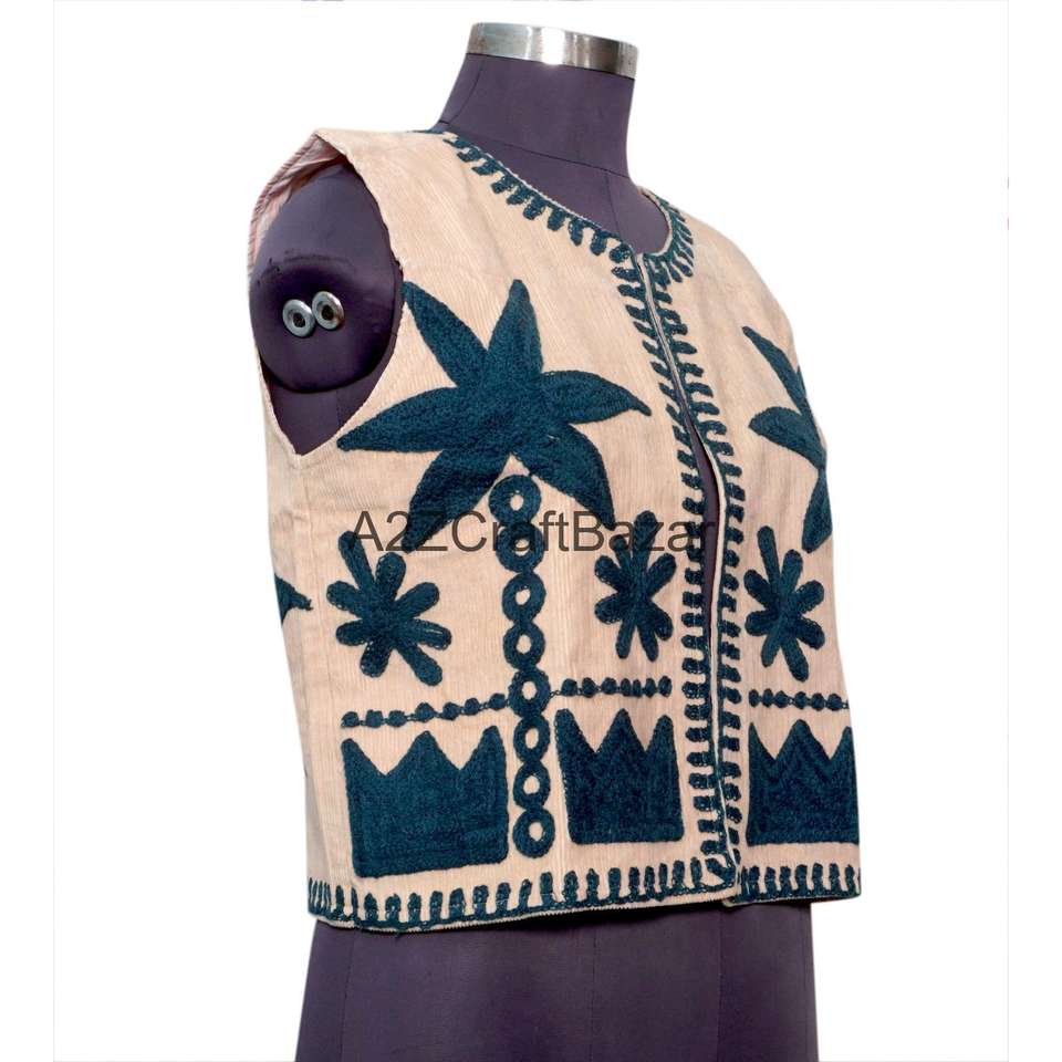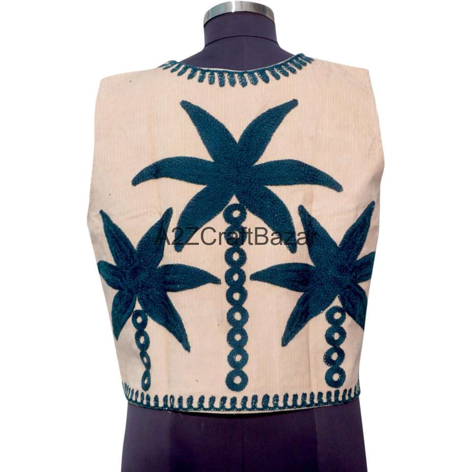 เสื้อแจ็คเก็ตผ้าฝ้ายพิมพ์ลายดอกคอตไรส์สำหรับผู้หญิง งานแฮนด์เมด ดีไซน์วินเทจ เนื้อผ้าระบายอากาศดี มีโลโก้ด้านหลัง แขนครึ่งตัว