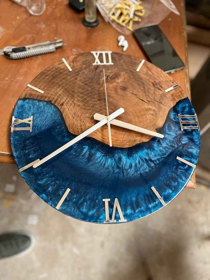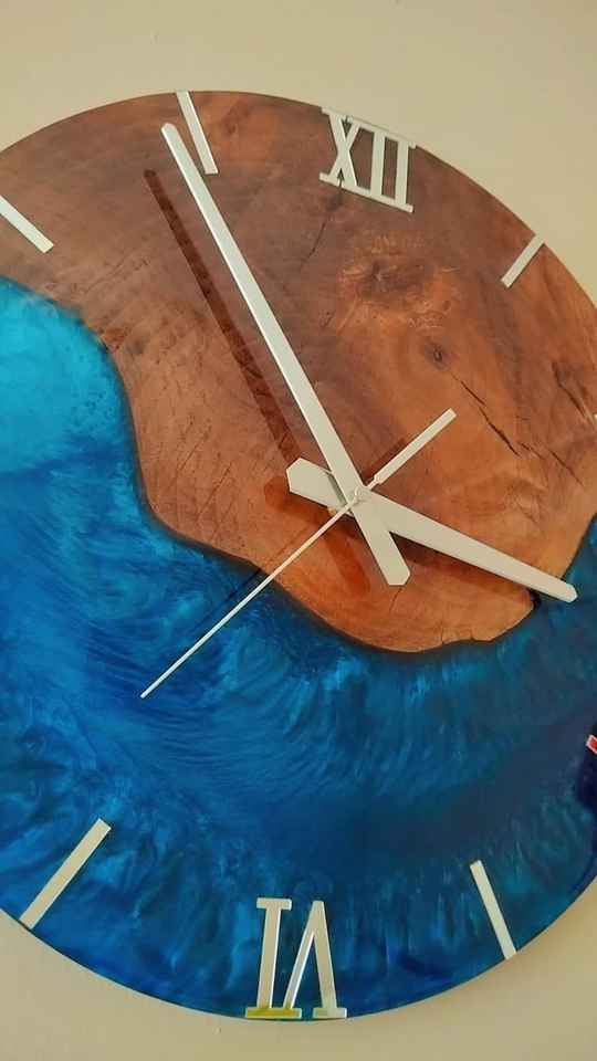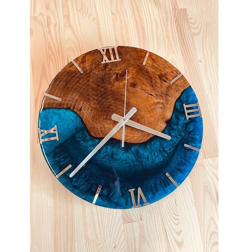 นาฬิกาแขวนผนังทำมือจากเรซิ่นและไม้ ทันสมัย ทนทาน ใช้งานได้จริง สวยงาม และตกแต่งได้อย่างลงตัว เหมาะสำหรับห้องนั่งเล่นและห้องนอน