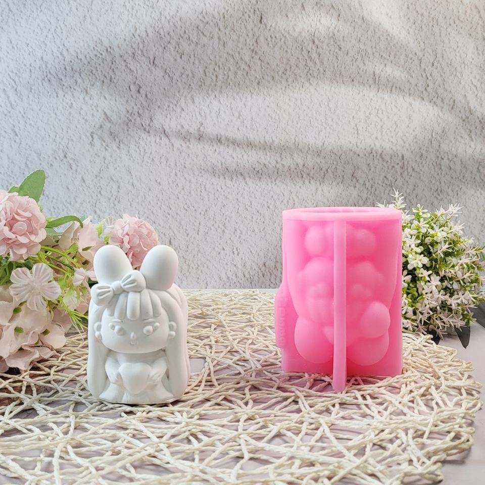 แม่พิมพ์หล่อทำด้วยมือทำจากเรซิ่นสำหรับงานประดิษฐ์ทำด้วยตัวเองเครื่องประดับตกแต่งสไตล์เจ้าหญิงซิลิโคนกระต่ายแห่งความรักเครื่องมือทำเค้ก W0539