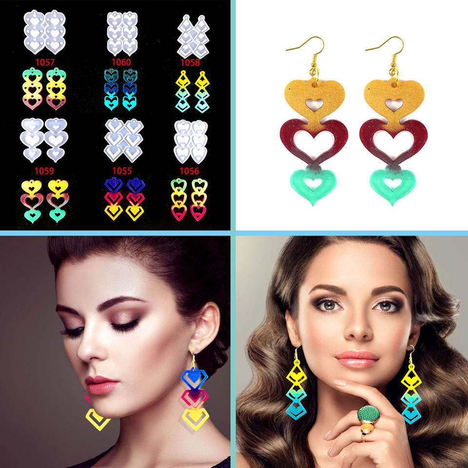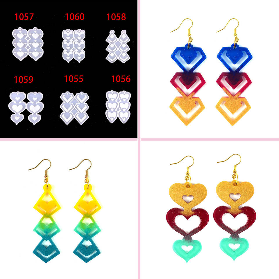 แม่พิมพ์หล่อทำด้วยมือทำจากเรซินสำหรับเครื่องประดับตกแต่งสไตล์ DIY แม่พิมพ์ต่างหูชุดรูปหัวใจสาม1055เครื่องมือทำเค้ก