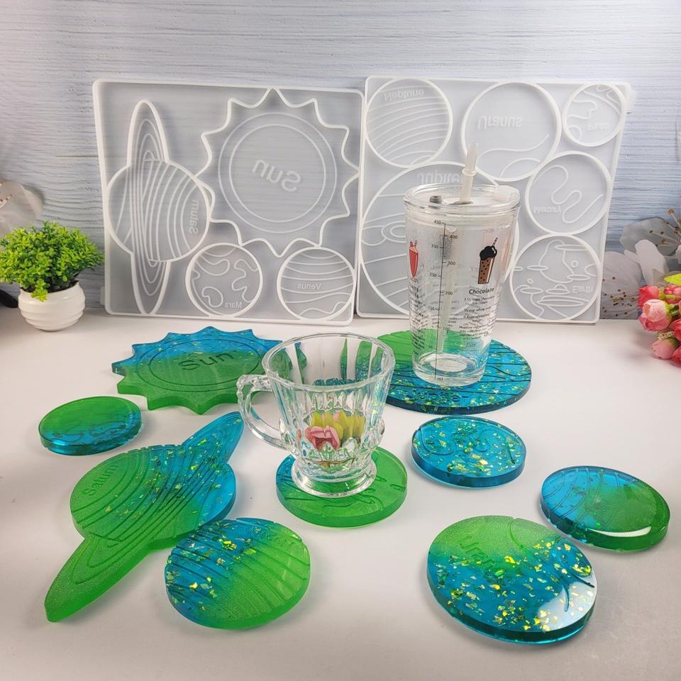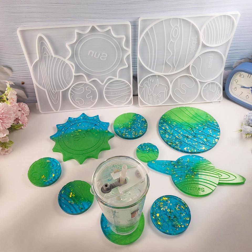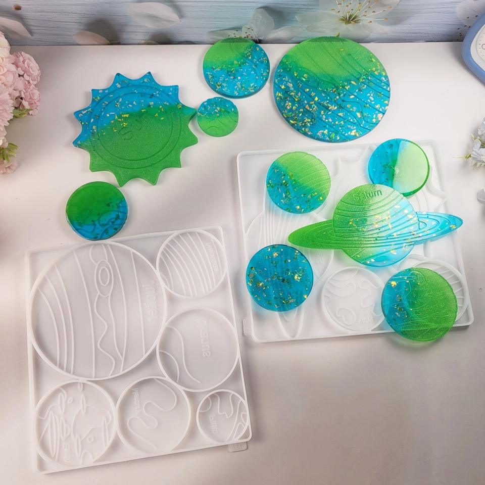 Handmade Resin Casting Molds for DIY Decorative Ornaments Ins Style Silicone Solar system planets coaster Mold 5946-1