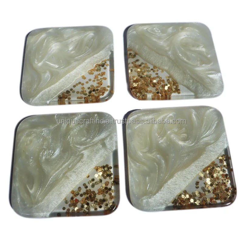 ที่รองแก้วแวววาวเศษกระดาษสีเรซินทำด้วยมือมีประกายสวยงามอุปกรณ์สำหรับเครื่องดื่มที่มีสไตล์ชุดเครื่องประดับเรซิ่นที่ทันสมัย