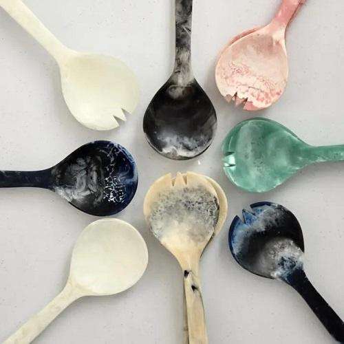 เซิฟเวอร์สลัดทำด้วยมือพร้อมเนื้อสัมผัสเรียบทนทานเครื่องมือรับประทานอาหารสำหรับการตั้งค่าโต๊ะและการนำเสนออาหาร