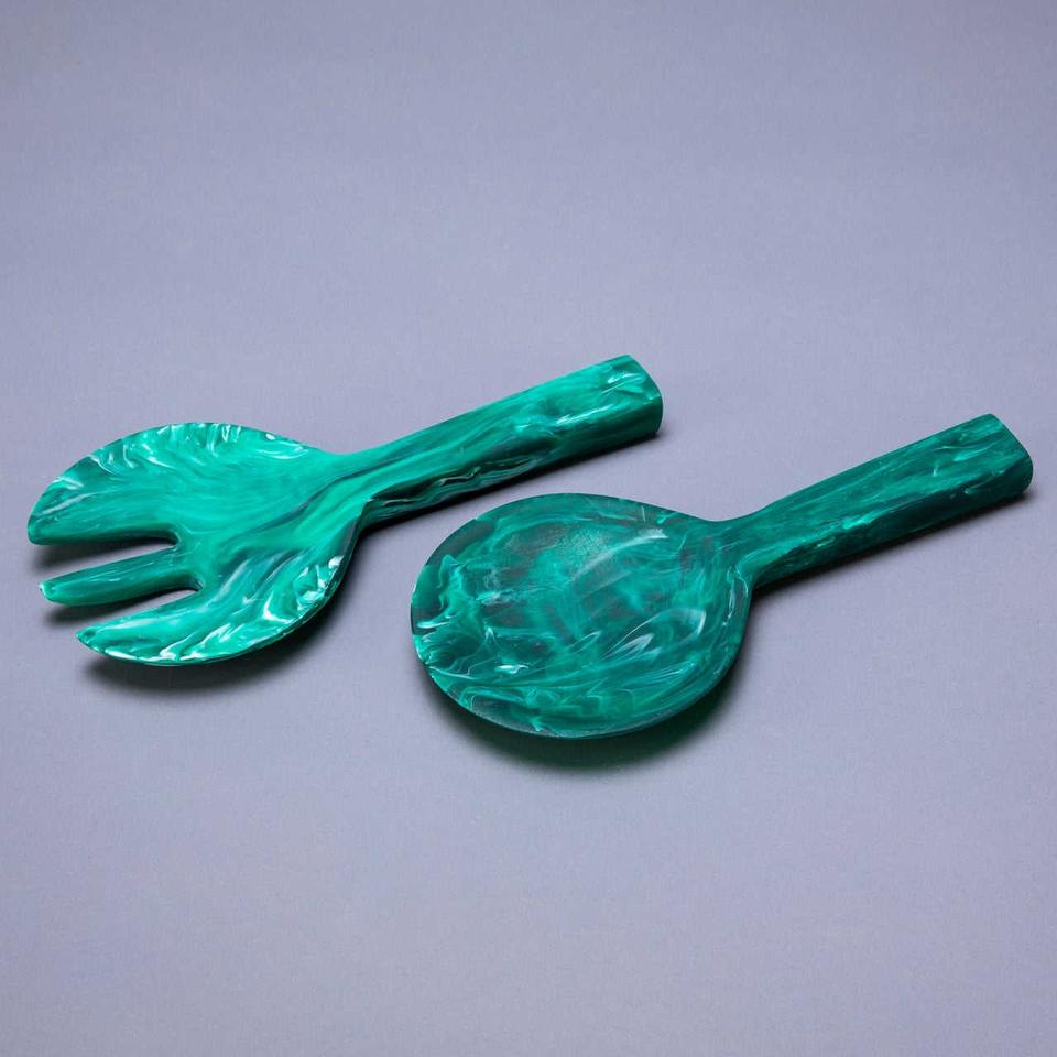 ชุดช้อนส้อมสลัดเรซิ่นทำมือ ลายหินอ่อนสีน้ำเงิน ล้างในเครื่องล้างจานได้ ปรับแต่งได้ อุปกรณ์ครัวโดย Javed Handicrafts