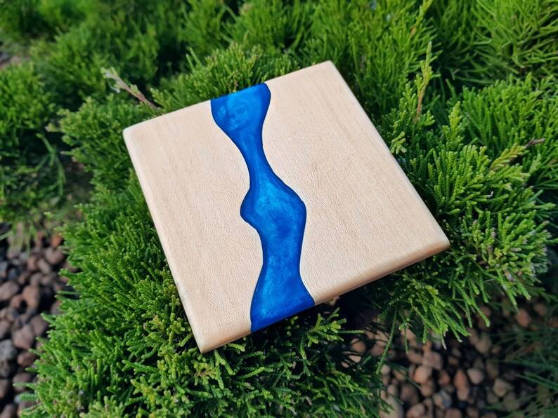 ชุดจานรองแก้วทำมือ คลาสสิก ทนทาน ทำจากเรซิ่นและไม้ธรรมชาติ สำหรับชา กาแฟ ทนความร้อน ใช้บนโต๊ะ