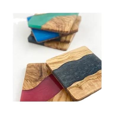 ถาดรองแก้วทำด้วยมือทำจากไม้และเรซินสำหรับโรงแรมลายไม้ธรรมชาติหลากสีสำหรับบ้านและโรงแรม