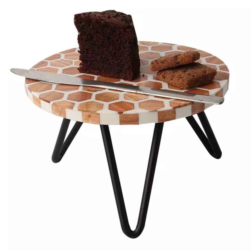 ขาตั้งเค้กไม้เรซิ่นอีพ็อกซี่ทันสมัย พร้อมฐานโลหะทำมือ สำหรับจัดแสดงขนมหวานในงานแต่งงาน อีด รอมฎอน และการเสิร์ฟในบ้านหรู