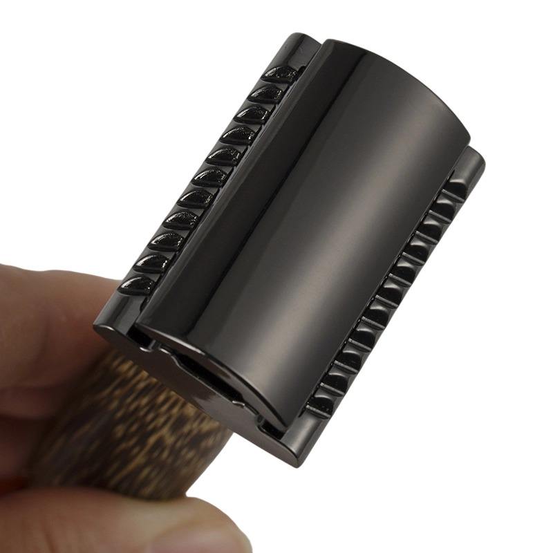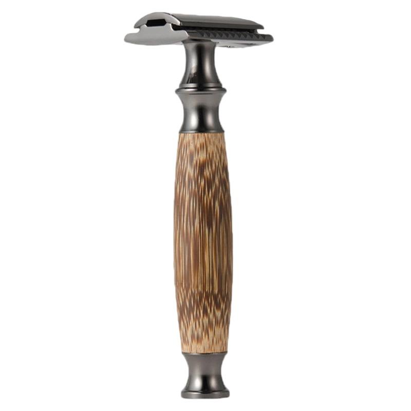 มีดโกนหนวดสแตนเลสสำหรับโกนหนวดที่โกนหนวดด้ามจับไม้ไผ่แบบใช้มือสามใบแบบย้อนยุคทำด้วยมือ