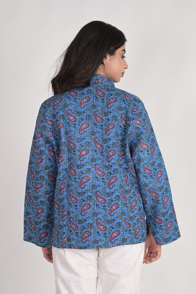แจ็คเก็ตฤดูหนาวผ้าฝ้ายอินเดีย:แจ็คเก็ตผ้าฝ้าย Kantha แบบกลับด้านได้ทำด้วยมือ