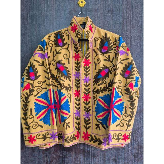 เสื้อแจ็คเก็ตกำมะหยี่ซูซานีลายดอกไม้ งานแฮนด์เมด แบบสองด้าน สไตล์วินเทจ ปักลายโบฮีเมียน เหมาะสำหรับงานเทศกาล สำหรับผู้หญิง