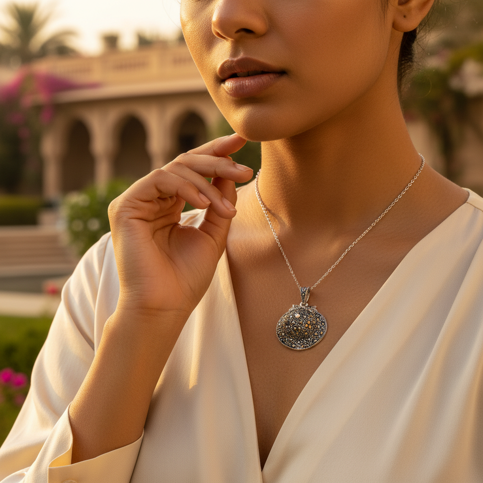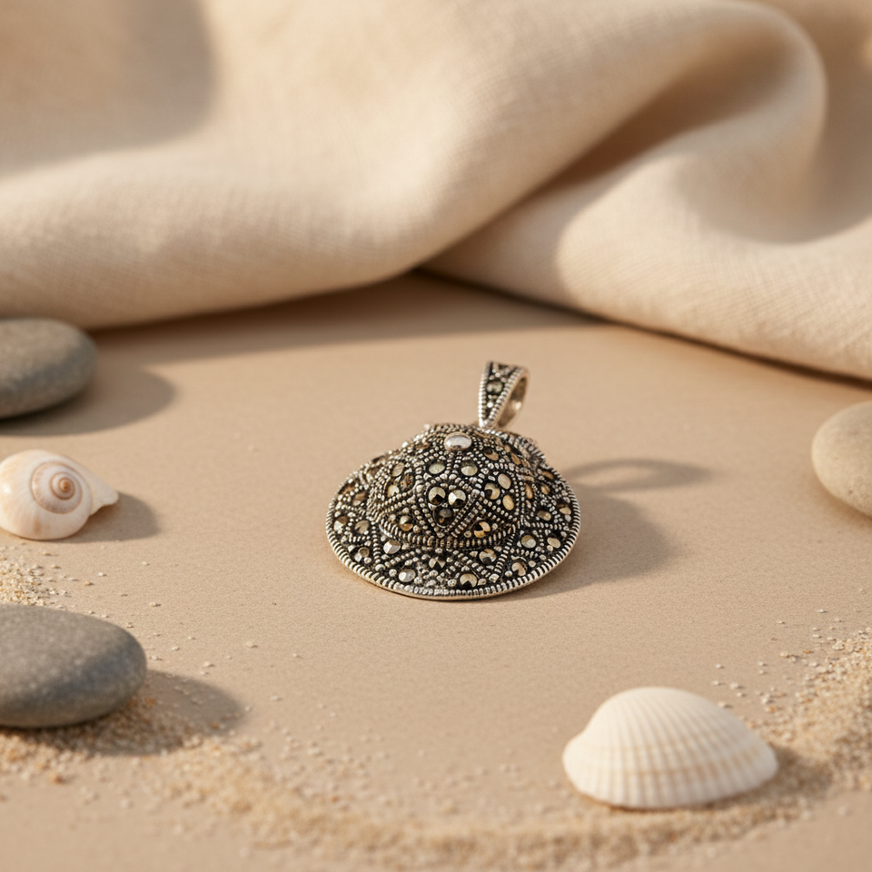 จี้ห้อยคอเงินแท้ 925 ชุบโรเดียม ประดับมาร์คาไซต์ งานแฮนด์เมด สำหรับผู้หญิง สวมใส่ได้ทุกวัน