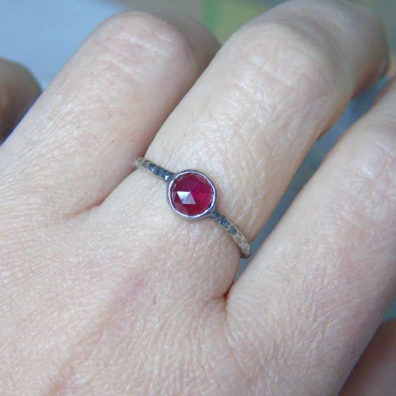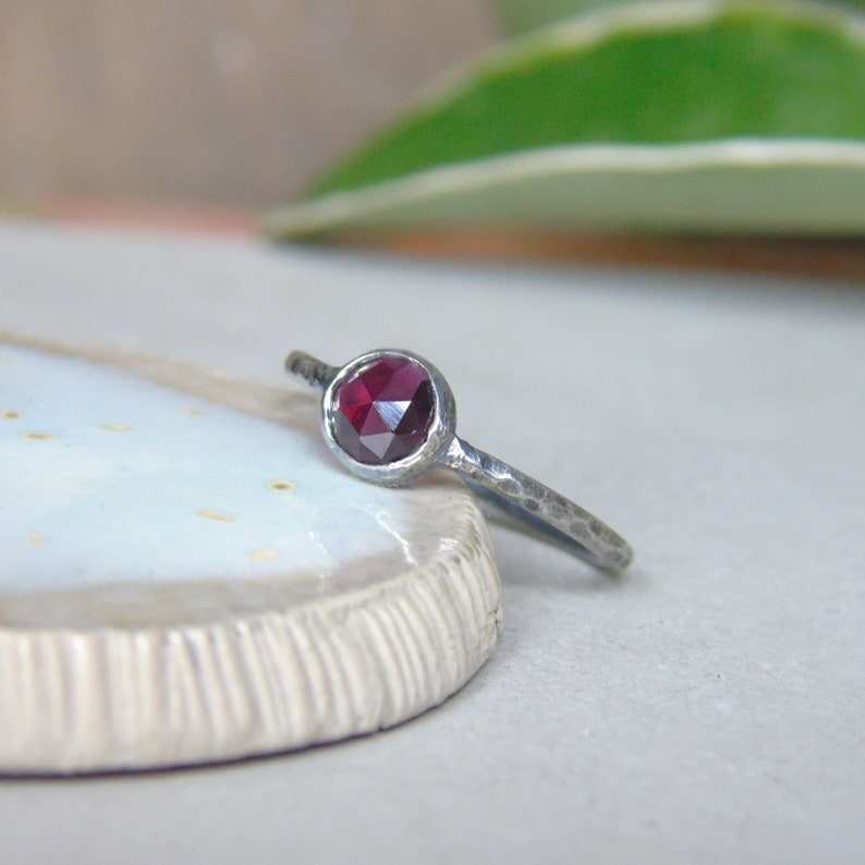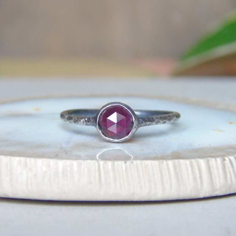 แหวนทองคำแท้ 14K ประดับโรโดไลต์การ์เนตทรงโรสคัท งานแฮนด์เมด ดีไซน์หรูหรา ประดับอัญมณีธรรมชาติ ของขวัญสำหรับผู้หญิง