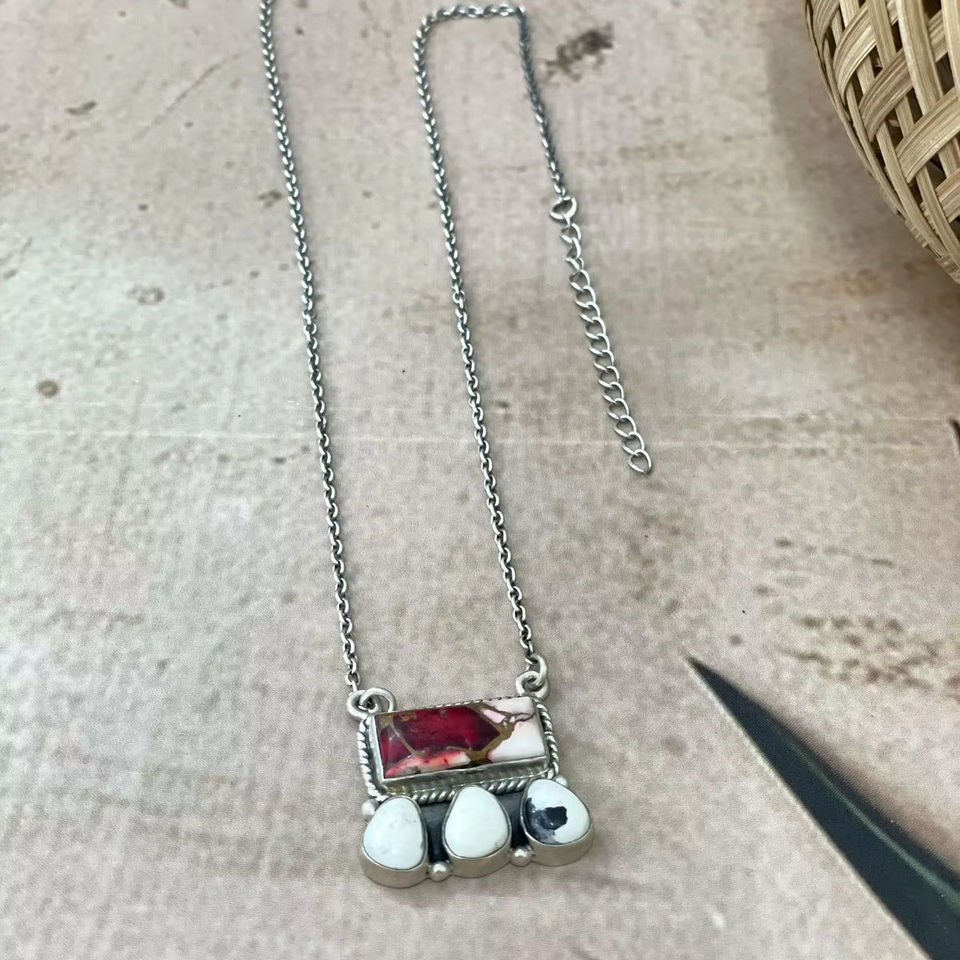สร้อยคอทำมือประดับดอกดาเลียสีขาว บัฟฟาโลเทอร์ควอยซ์ จี้เงินแท้ชุบทอง ตัวเรือนแบบปรับได้ ของขวัญสำหรับเธอ