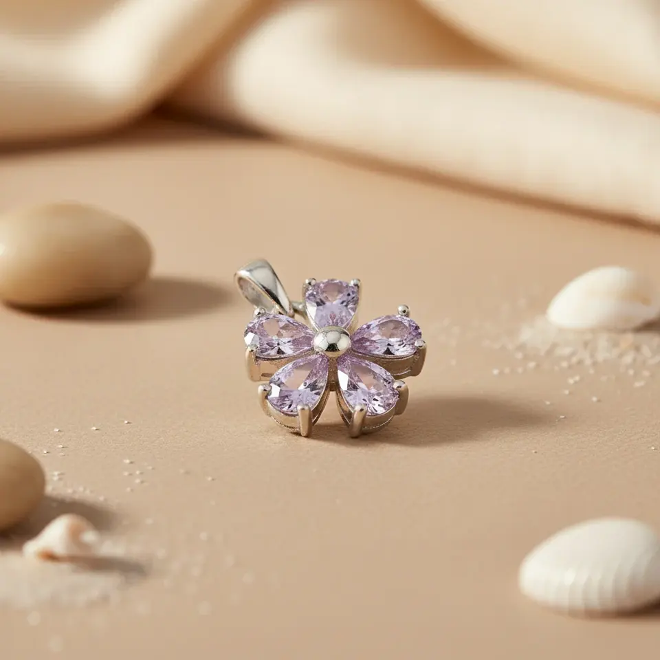 จี้รูปดอกไม้ทำมือประดับอเมทิสต์สีโรสโกลด์สำหรับผู้หญิง-เงินแท้ 925