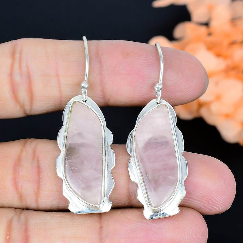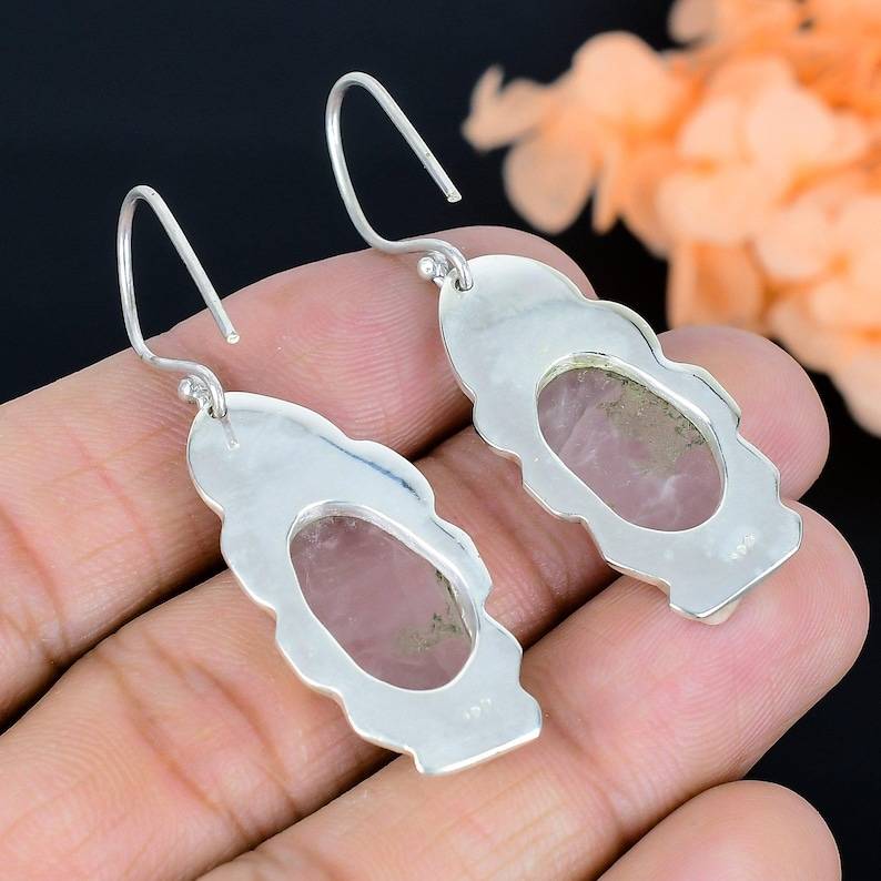 ต่างหูโรสควอตซ์ทำมือ เงินแท้ 925 ชุบทอง ประดับอัญมณีธรรมชาติ สำหรับผู้หญิง - ของขวัญวันครบรอบสุดหรูหรา