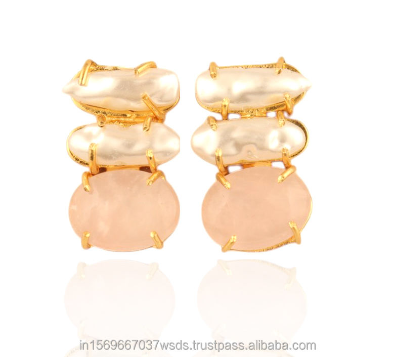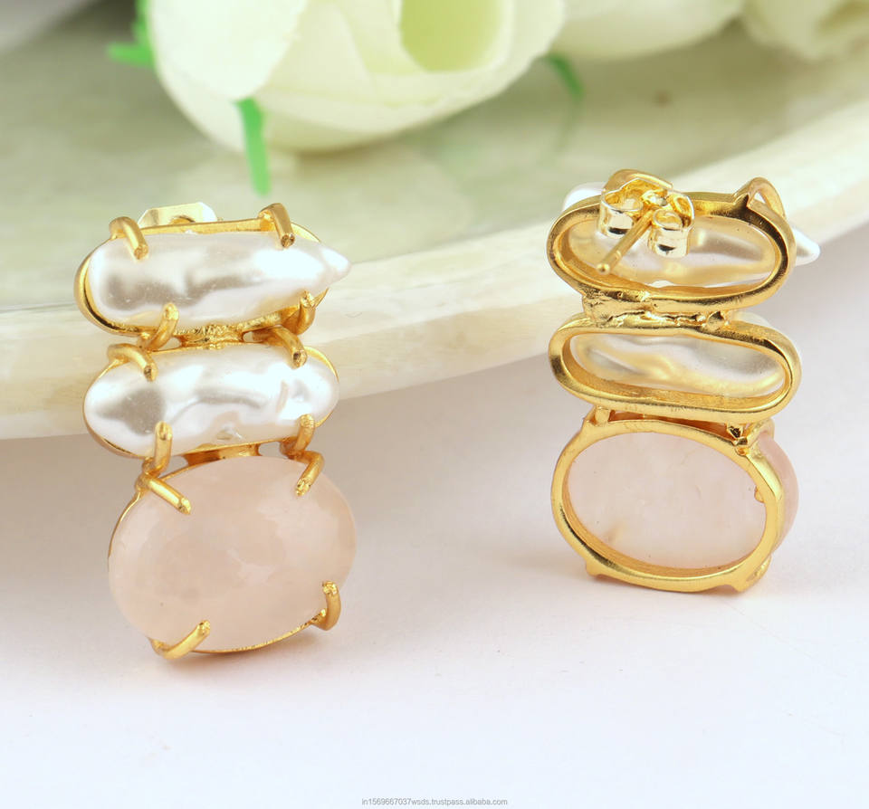 ทำด้วยมือโรสควอตซ์และต่างหูมุกเกาหลีเครื่องประดับหรูหราสำหรับผู้หญิง