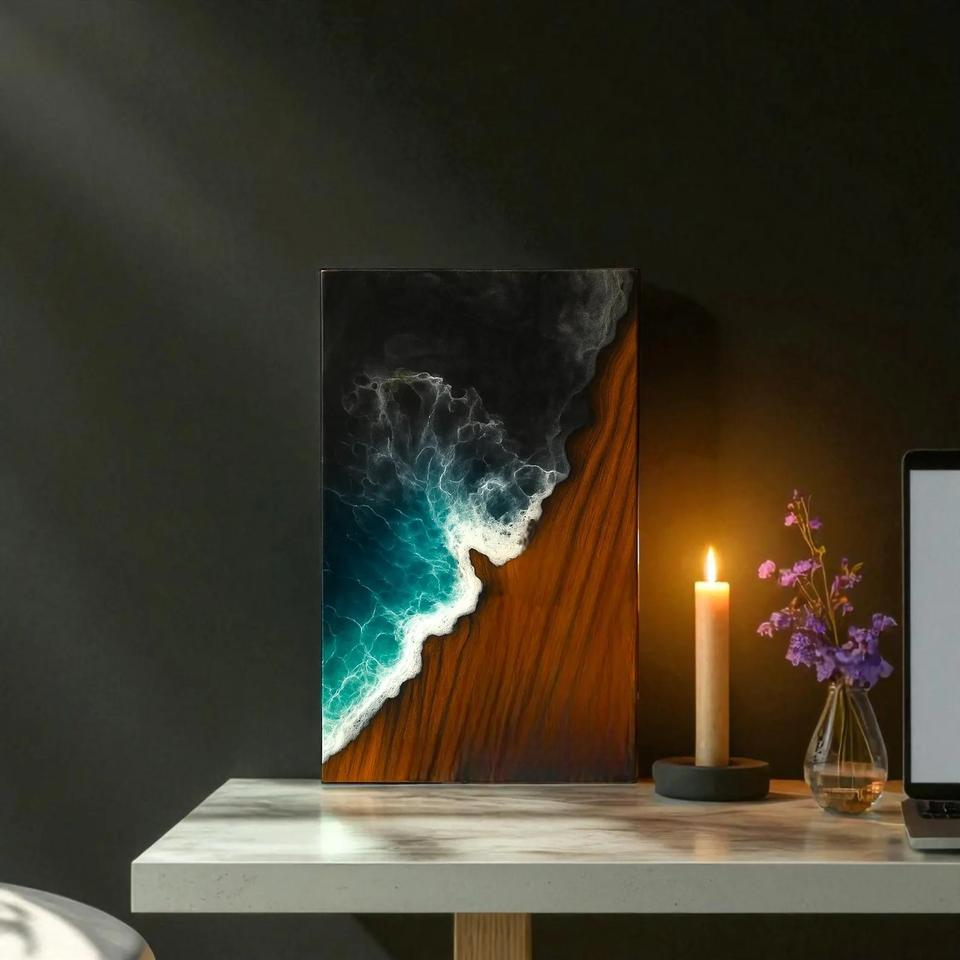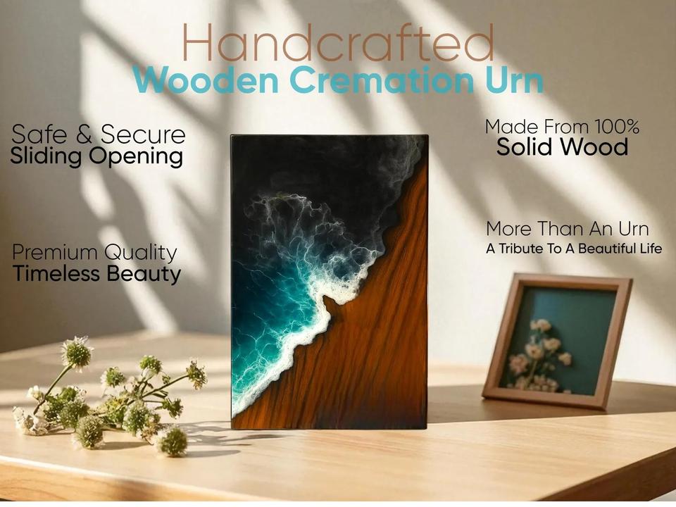 กล่องใส่เถ้ากระดูกทำมือจากไม้พะยูง: กล่องเก็บของที่ระลึกเรซิ่นสีดำลายมหาสมุทร สำหรับใส่เถ้ากระดูกมนุษย์ ขนาดกลาง 9x5.5 นิ้ว