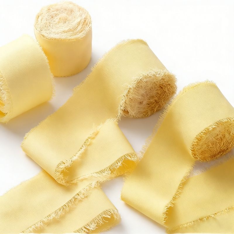 ริบบิ้นผ้าชีฟองไหมทำมือขอบรุ่ย ริบบิ้นผ้าชีฟองไหมดิบทำมือขอบรุ่ย ขายส่งพร้อมขอบรุ่ย