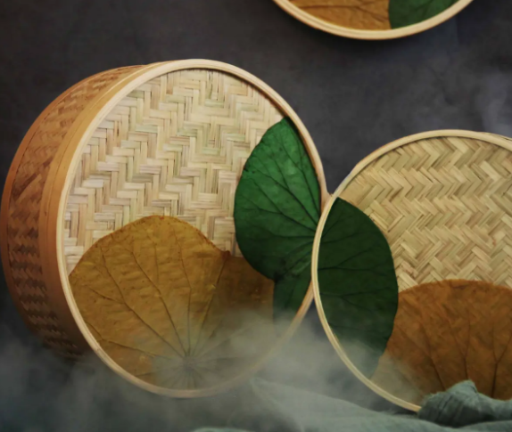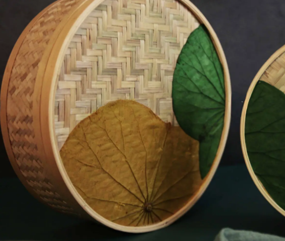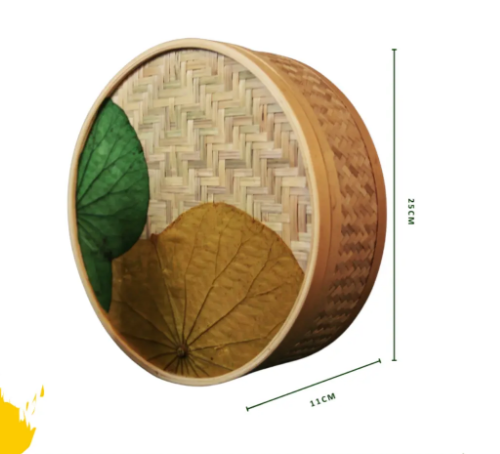 กล่องไม้ไผ่ทรงกลมทำด้วยมือพร้อมใบบัว-กล่องเก็บของรักษ์โลกและของขวัญ | Viet fargimex