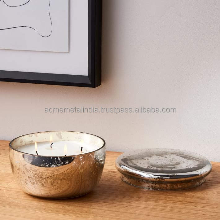 โถขี้ผึ้งสแตนเลสทรงชามทรงกลมทำด้วยมือโหลเคลือบสีเทาตกแต่งบ้านในร่มภาชนะขี้ผึ้งที่หรูหรา