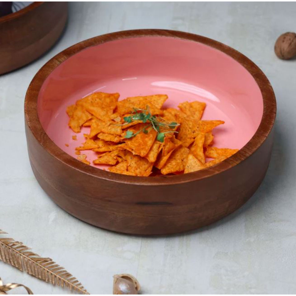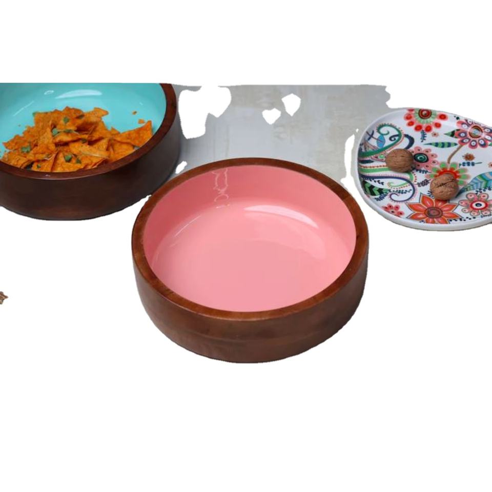 ชามเสิร์ฟอาหารและผลไม้ทรงกลมทำด้วยมือใช้งานได้เหมาะสำหรับการผสมเครื่องใช้ในโรงแรมและร้านอาหารใช้ไม้ธรรมชาติ