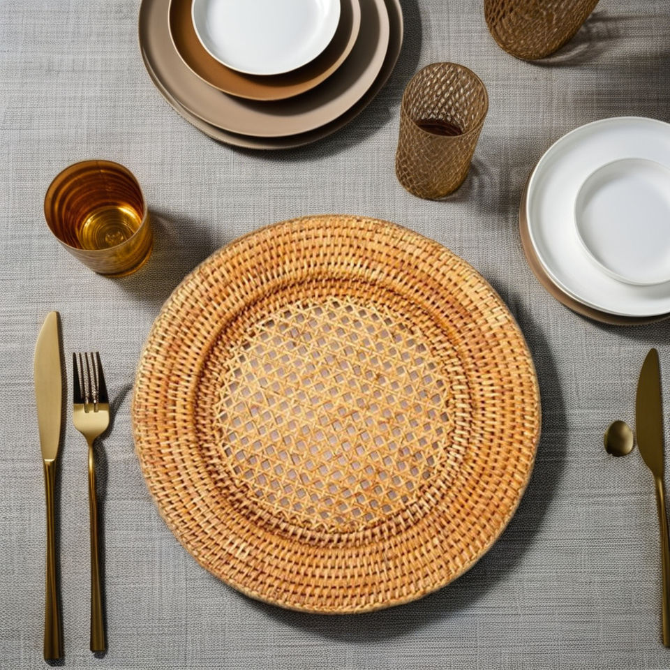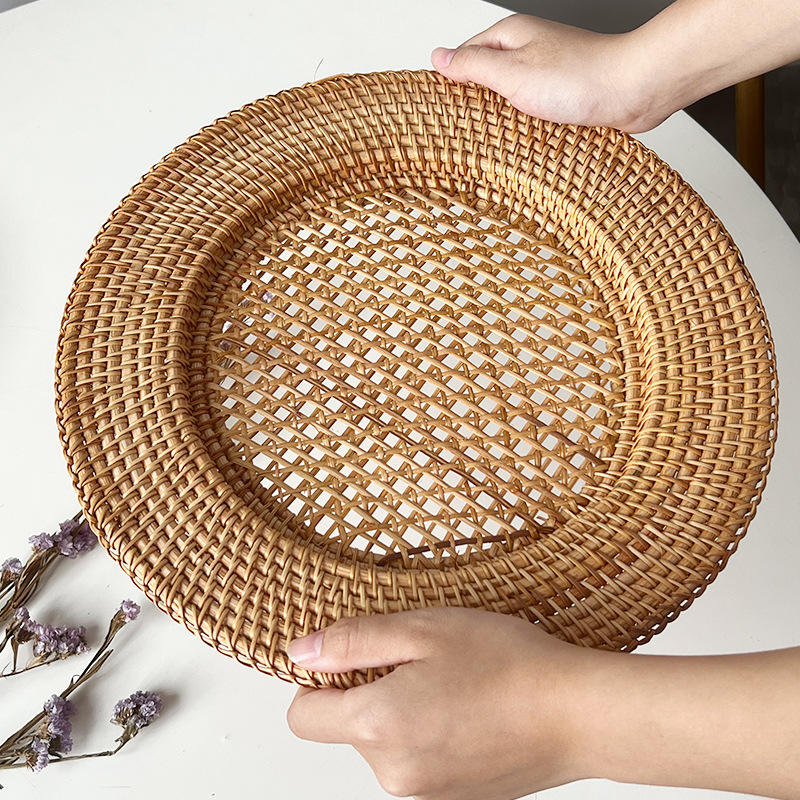 แผ่นรองจานหวายทรงกลมทำด้วยมือเสื่อปูโต๊ะธรรมชาติสานเป็นมิตรต่อสิ่งแวดล้อมสำหรับงานแต่งงานตกแต่งบ้าน