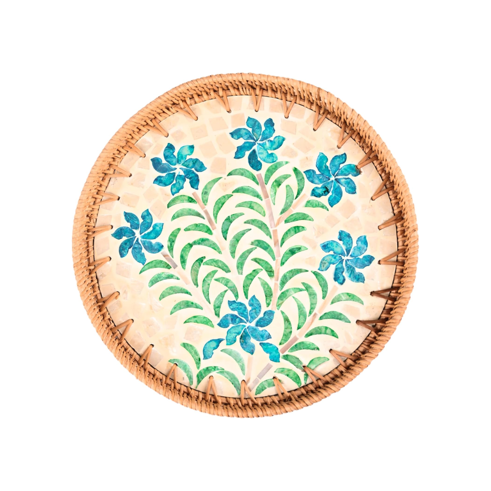 ชื่อผลิตภัณฑ์:ถาดใส่อาหารทรงกลมทำจากหวายฝังมุก
