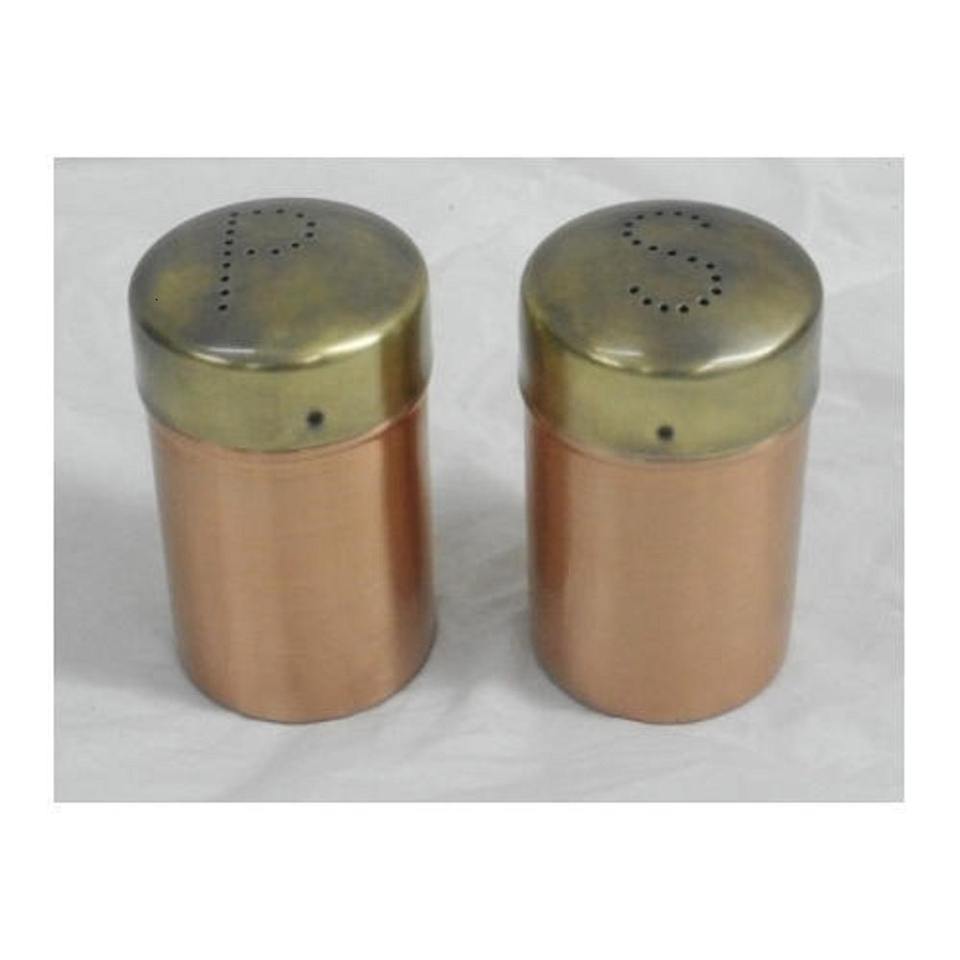 ชุดเครื่องปรุงรสเกลือและพริกไทยทรงกลมทำมือ 2 ชิ้น พร้อมฝาปิดทองแดง เหมาะสำหรับภาชนะบนโต๊ะอาหารที่มีสไตล์และการจัดเก็บอย่างหรูหรา