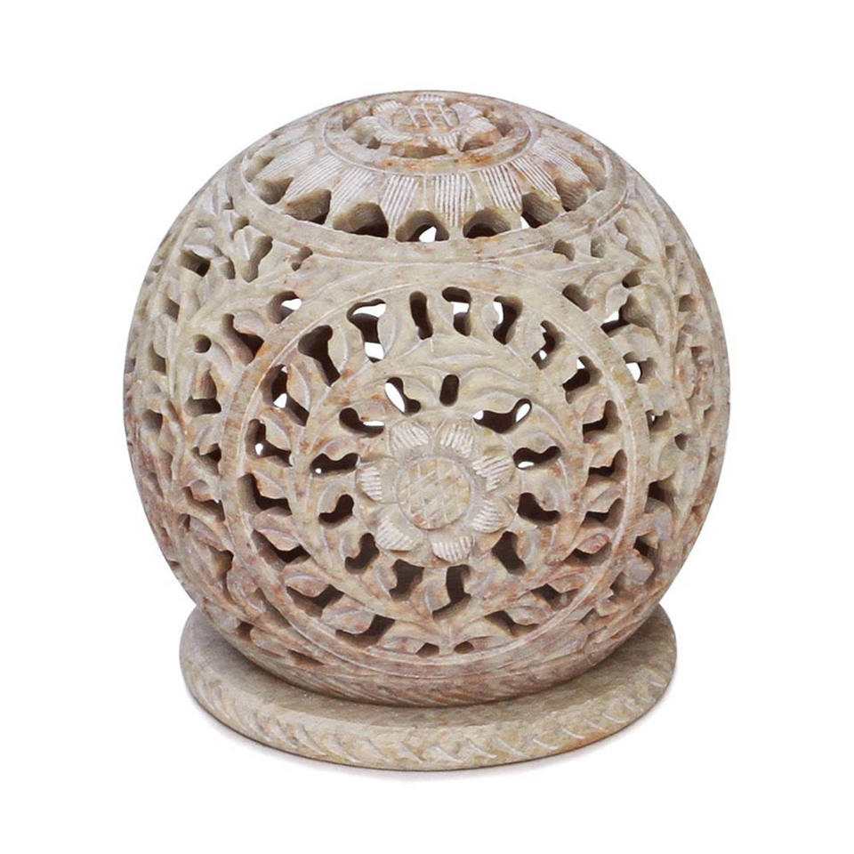 Soapstone Hand Carved Design Gifting Round Shape Candle Holder