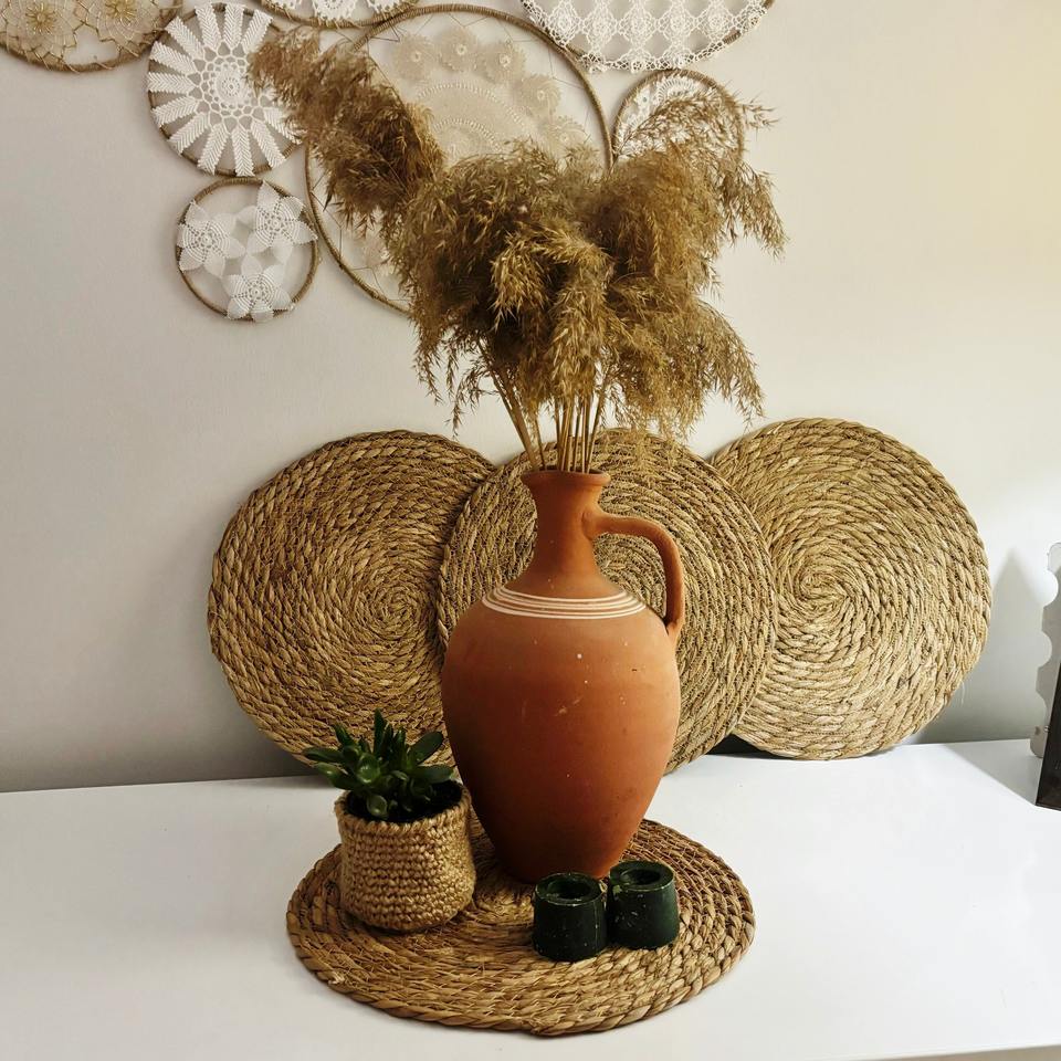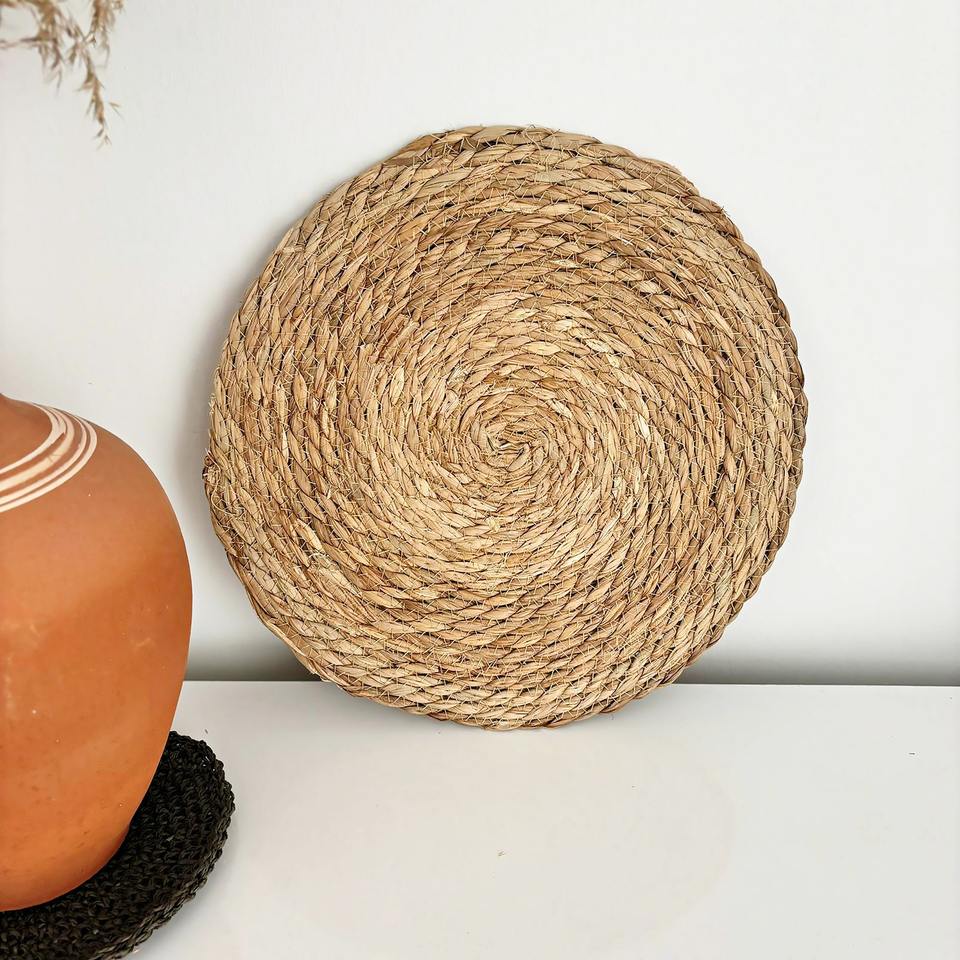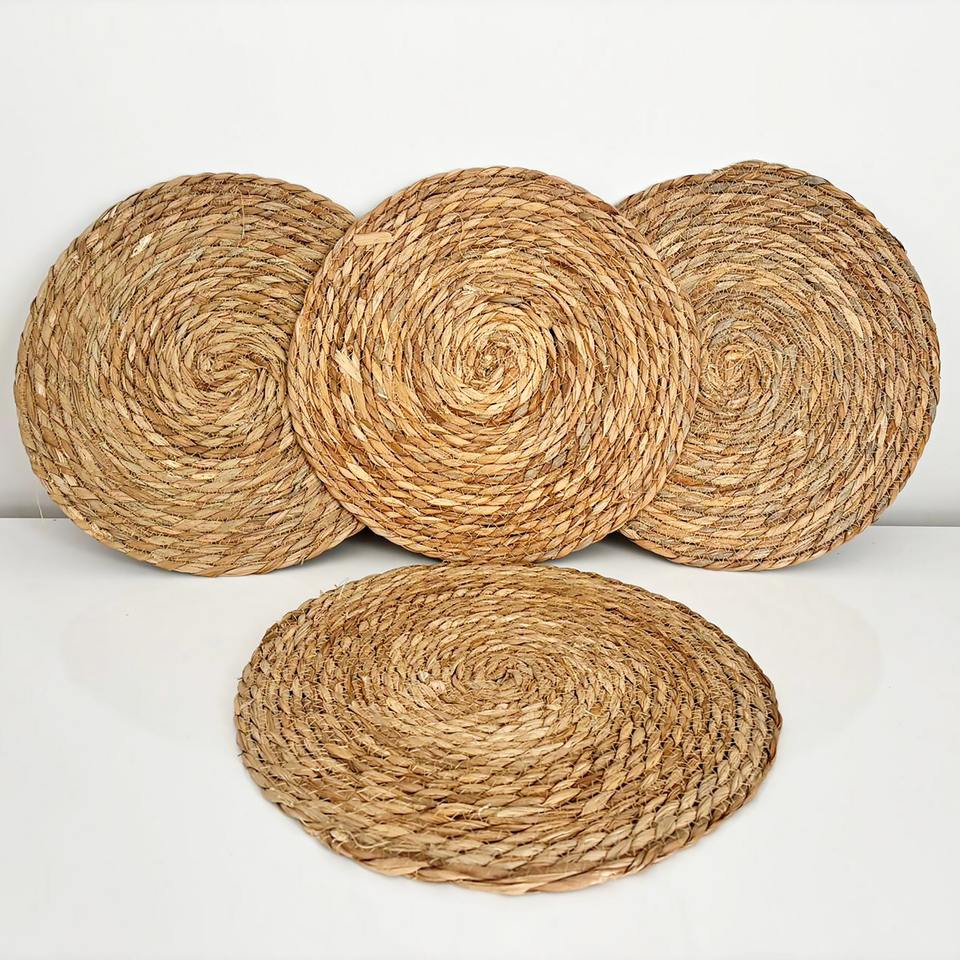 แผ่นรองจานผักตบชวาทรงกลมทำด้วยมือเป็นมิตรต่อสิ่งแวดล้อมผลิตในเวียดนามแผ่นรองจานทอสำหรับตกแต่งโต๊ะขายส่ง