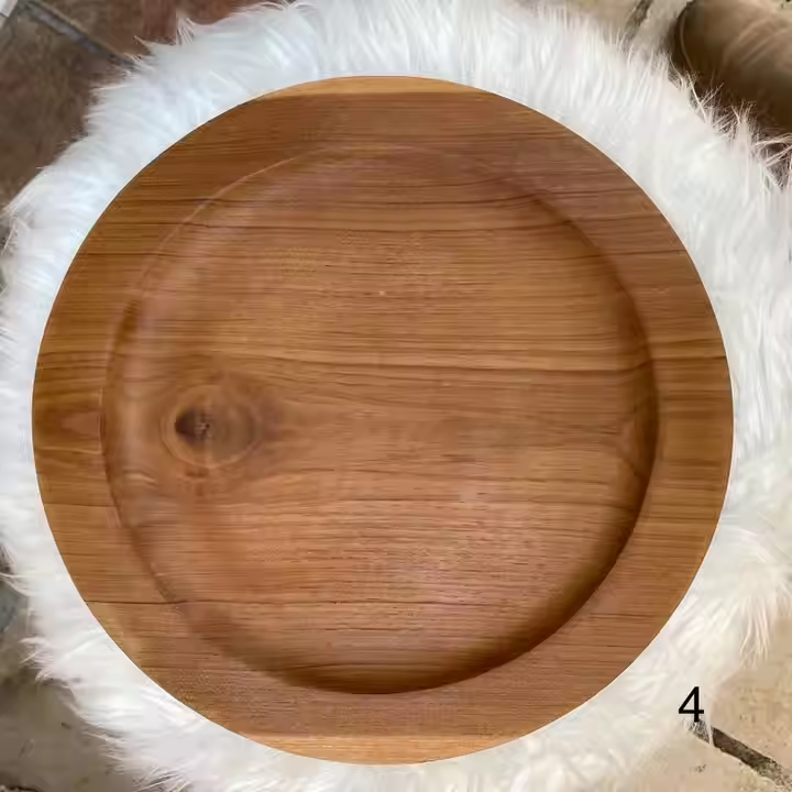 จานไม้ทรงกลมทำด้วยมือทำความสะอาดง่ายและน้ำหนักเบาสำหรับจานขนมขนมด้วยงานฝีมือเสี้ยว