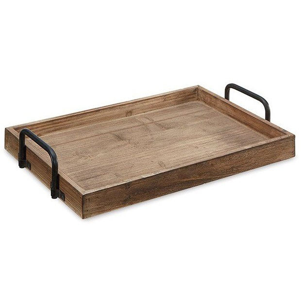 ถาดเสิร์ฟไม้กระถินเทศทำมือสไตล์เรียบง่าย พร้อมหูจับเหล็กดัด ถาดสี่เหลี่ยมสำหรับโต๊ะกาแฟและร้านอาหาร