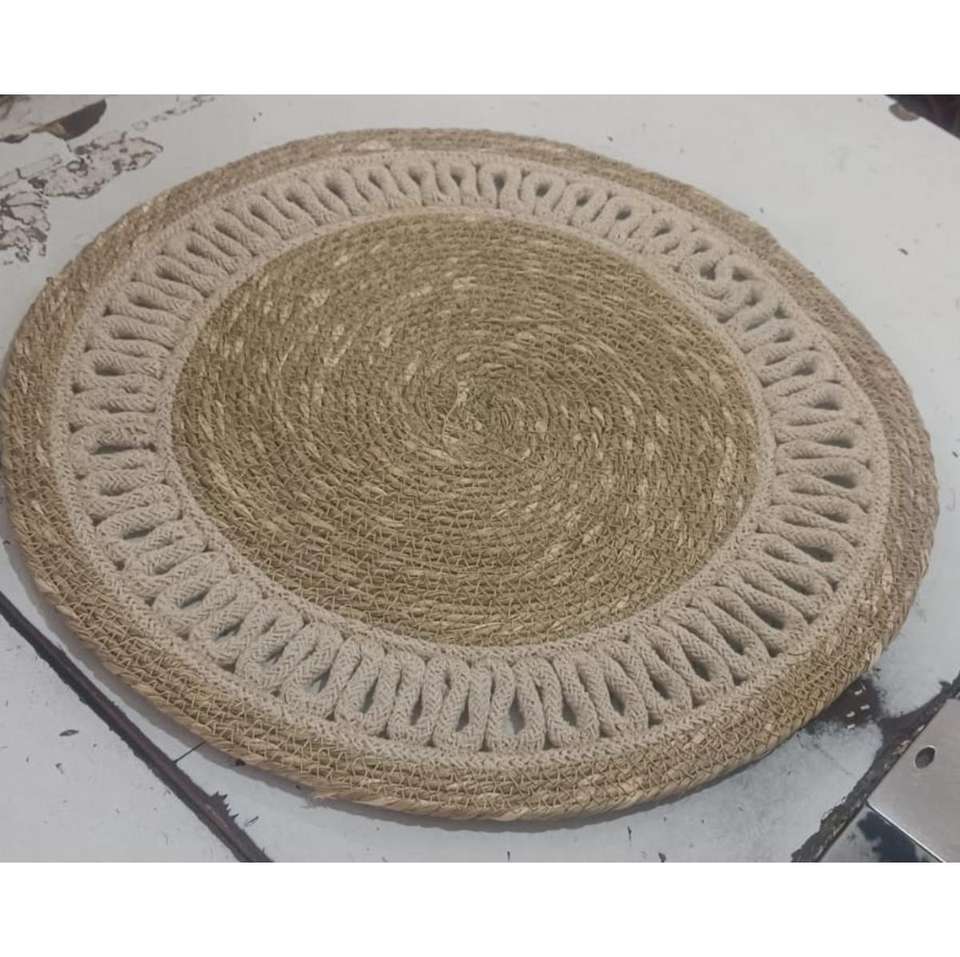 แผ่นรองจานทำมือสไตล์เรียบง่ายจากปอกระเจาธรรมชาติ ทอจากปอกระเจาและผ้าฝ้าย สำหรับใช้ในบ้าน ห้องครัว ร้านกาแฟ โรงแรม นำเข้าจากอินเดีย