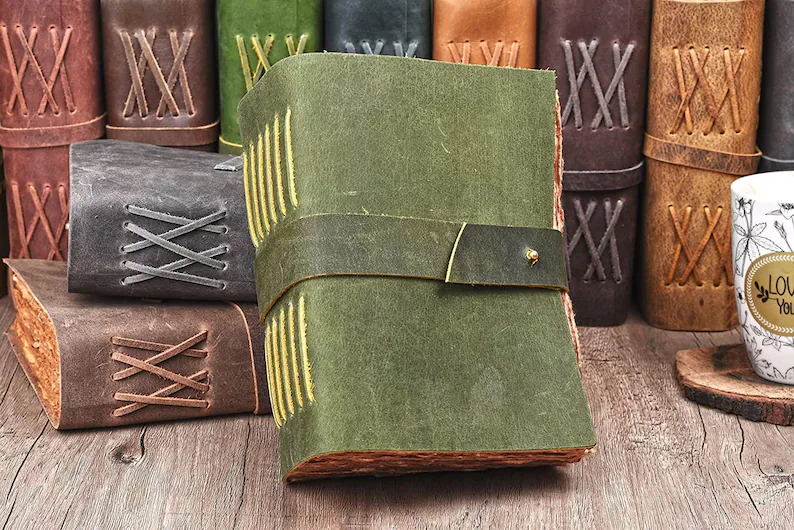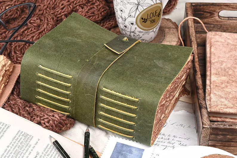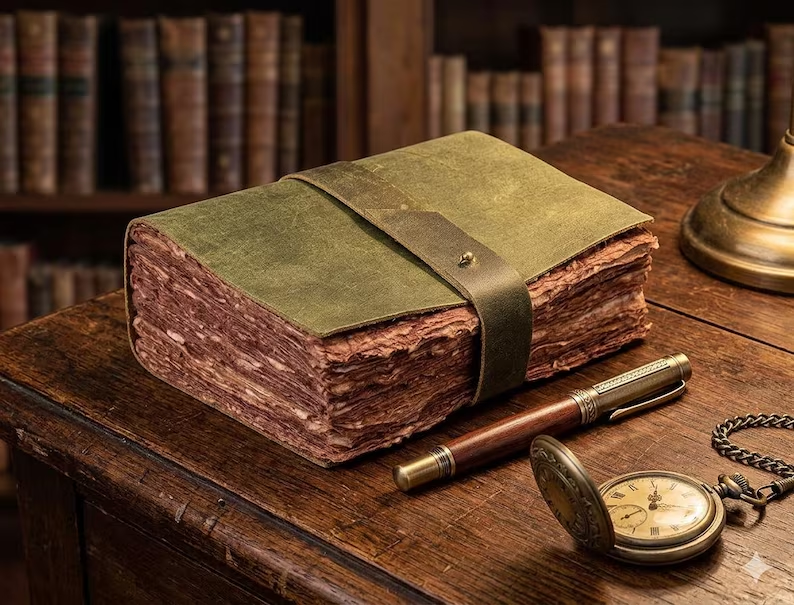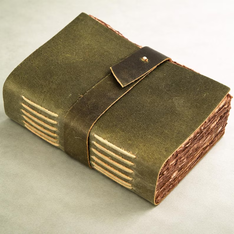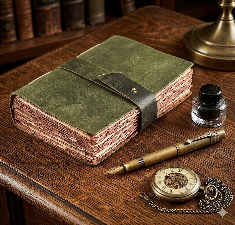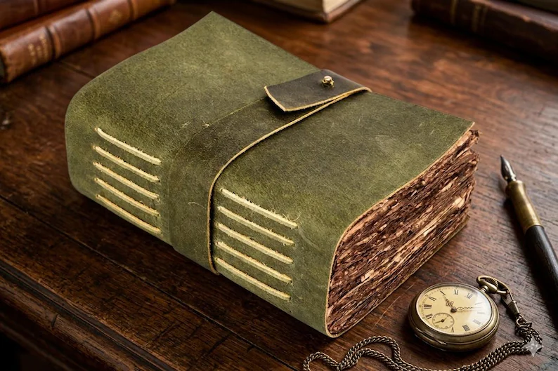 สมุดบันทึกปกแข็งทำมือ หนังสไตล์เรสติก กระดาษขอบดิบแบบวินเทจ สมุดวาดเขียนสำหรับงานศิลปะ