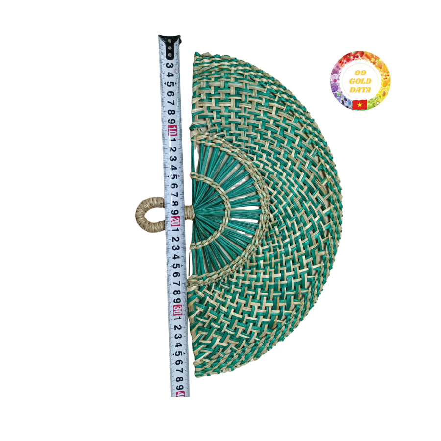 พัดลมมือจากหญ้าทะเลแบบชนบททำด้วยมือพัดลมสานจากใบปาล์มเป็นมิตรต่อสิ่งแวดล้อมสำหรับงานกิจกรรมริมชายหาดในฤดูร้อน