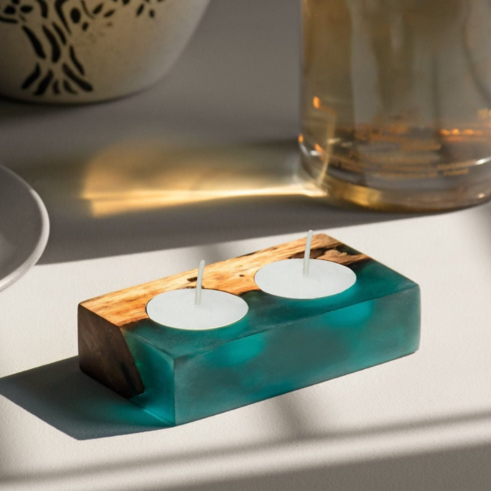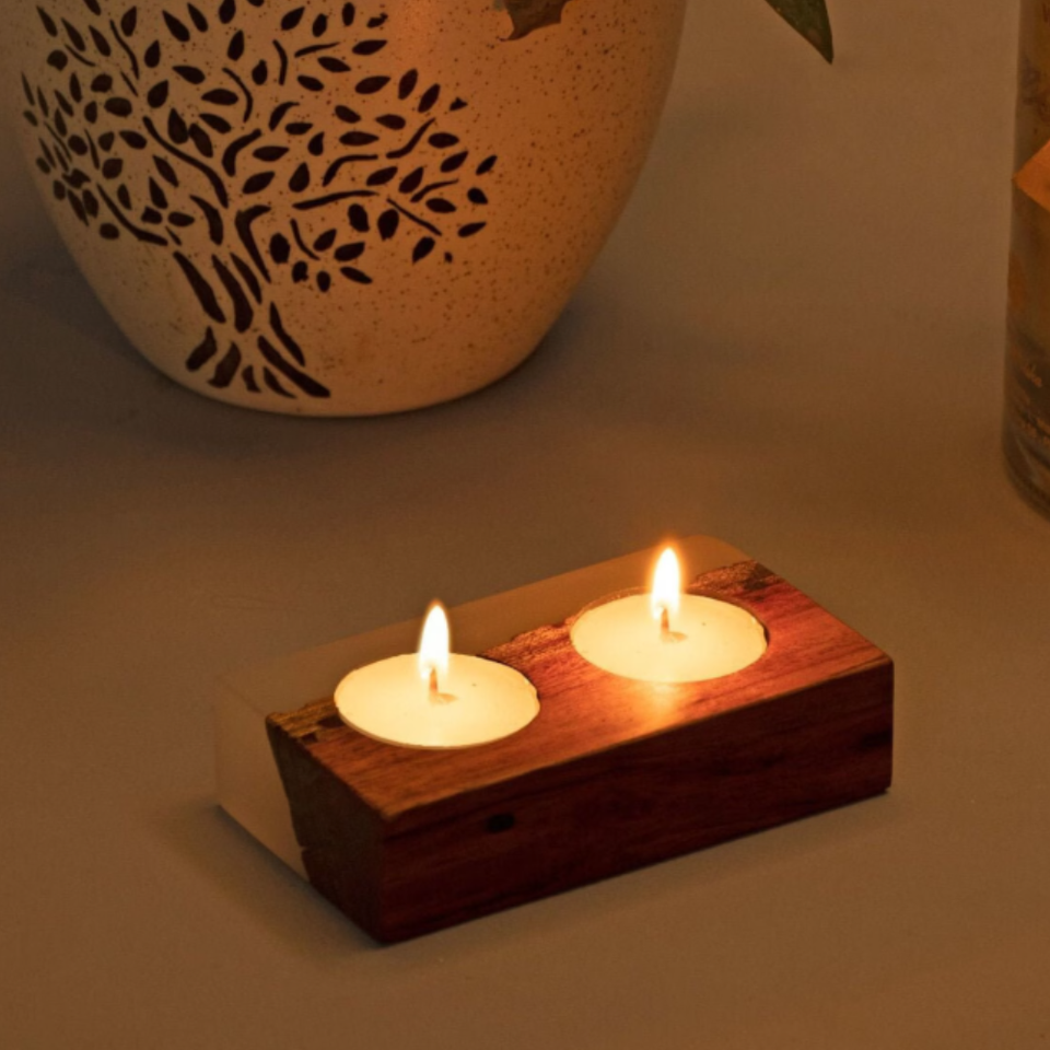 ที่ใส่เทียนทีไลท์ทำจากไม้และเรซินแบบชนบททำด้วยมือตกแต่งบ้านให้อบอุ่นในแบบฉบับของตกแต่งบ้านด้วยสำเนียงสำหรับ Diwali judaica เทียนหอม
