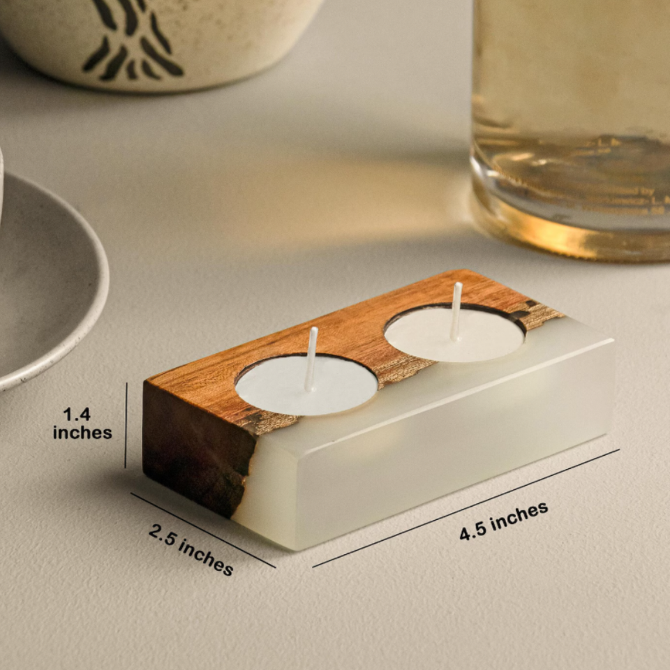 ที่ใส่เทียนทีไลท์ทำจากไม้เรซินแบบชนบทที่ทำด้วยมือของตกแต่งบ้านที่อบอุ่นในแบบส่วนตัวเครื่องประดับสำหรับเทียนดิวาลีเทียนหอม