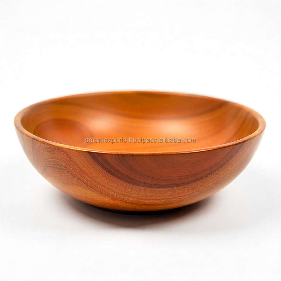 ชามไม้แฮนด์เมดแบบชนบทสำหรับห้องครัวอุปกรณ์รับประทานอาหารอเนกประสงค์และของตกแต่งบ้านทันสมัยด้วยผิวธรรมชาติที่เรียบเนียน