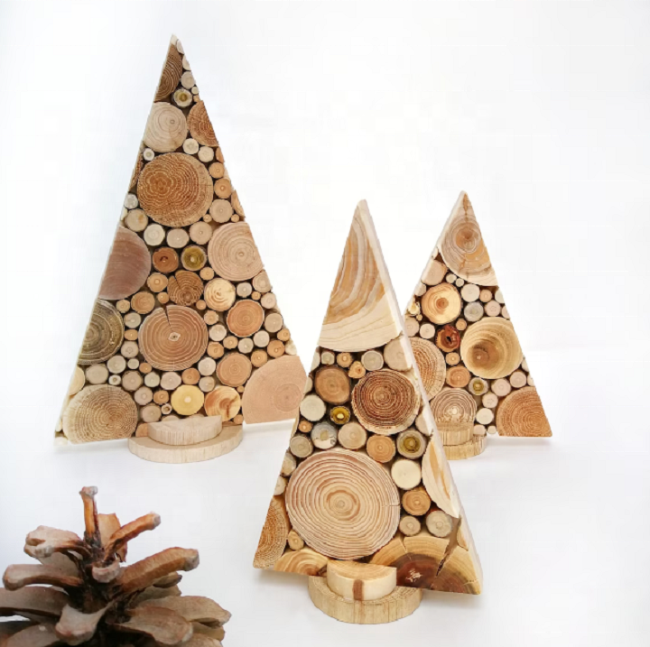 เครื่องประดับต้นคริสต์มาสไม้ทำมือสไตล์ชนบท เป็นมิตรกับสิ่งแวดล้อม แกะสลักลายตกแต่งเทศกาล รูปทรงต้นไม้สไตล์มาสคอต สำหรับตกแต่งบ้าน