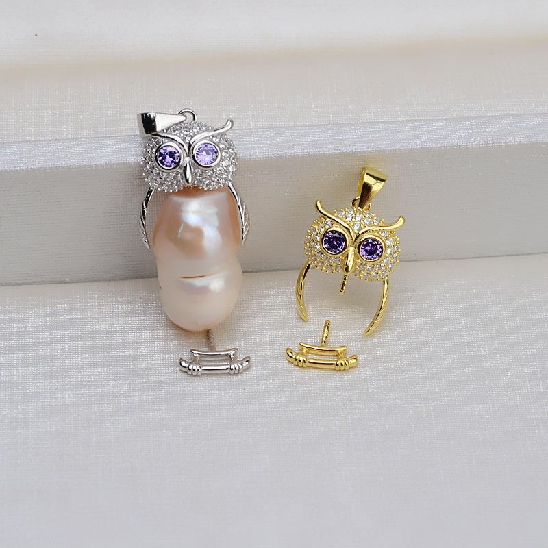 จี้ไข่มุกบาโรกเงินแท้ S925 ทำมือ พร้อมที่ใส่ไข่มุกรูปนกฮูกสำหรับผู้หญิง อุปกรณ์ DIY สร้อยคอ 1421