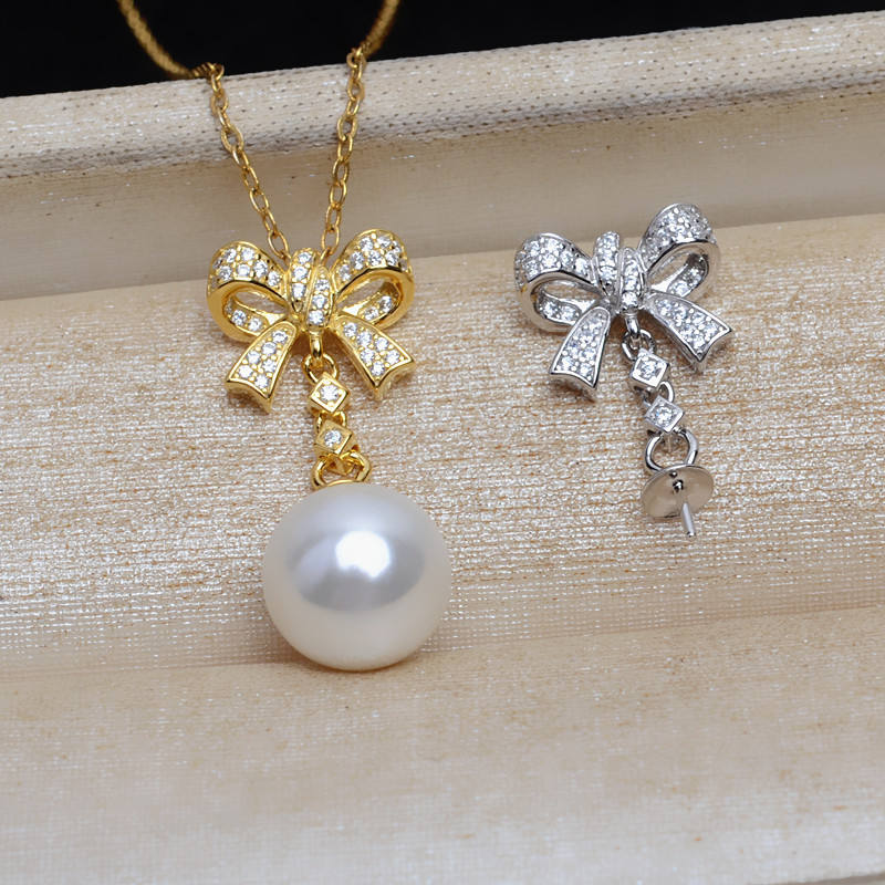 Handmade S925 Silver Bow Pendant DIY Female Jewelry Accessory with 9-13 Pearl Empty Stand JG5235 8mm Size Earrings Accessories