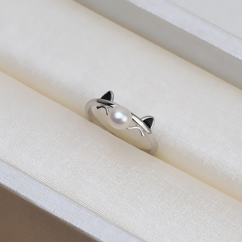 แหวนเงินแท้ S925 ทำมือ สำหรับงาน DIY รูปทรงหูแมว แบบเปิด 4-5 ห่วง ประดับมุก แหวนแฟชั่นรูปหูแมว