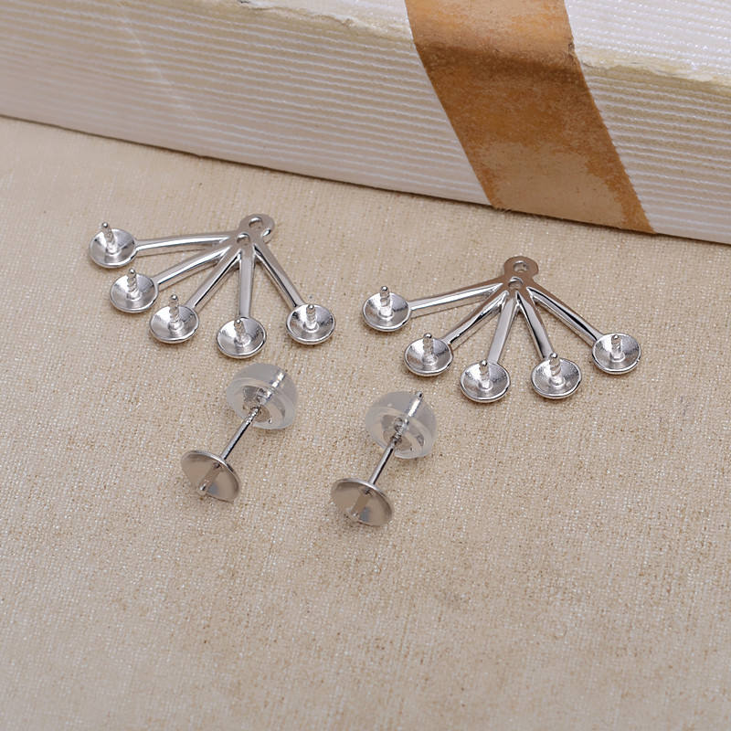 ต่างหูเงินแท้ S925 รูปเกลียวขนมทอด ทำมือ ชุดแหวนเปิดปากเรียบง่ายสำหรับผู้หญิง พร้อมที่ใส่ไข่มุกเปล่า อุปกรณ์ DIY ขนาด 3 มม.