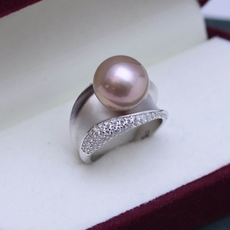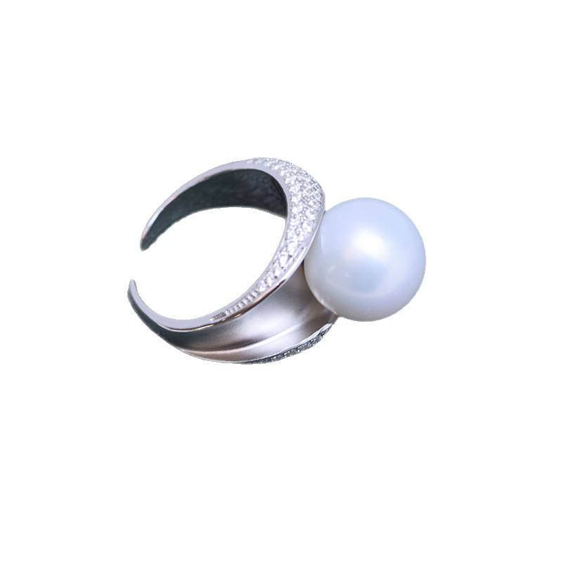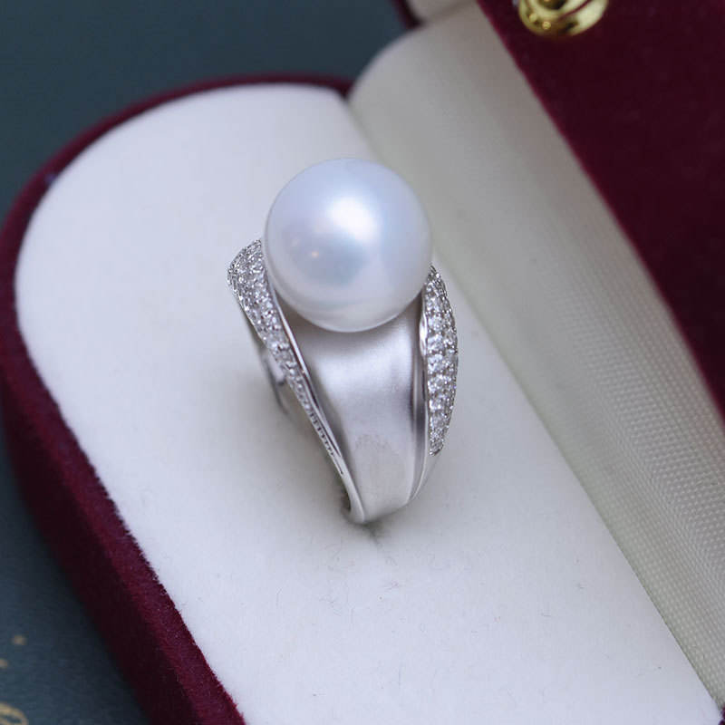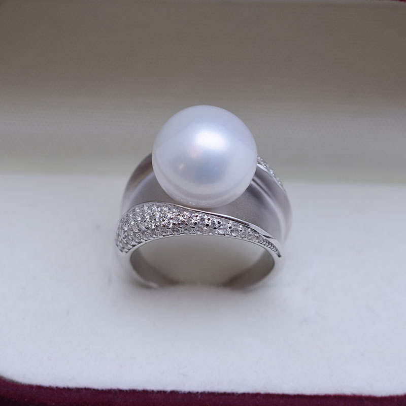 Handmade S925 Silver Matte Freshwater 11-12mm White Round Strong Light Exquisite Flaws Ring Fashionable Freshwater Pearl Ring