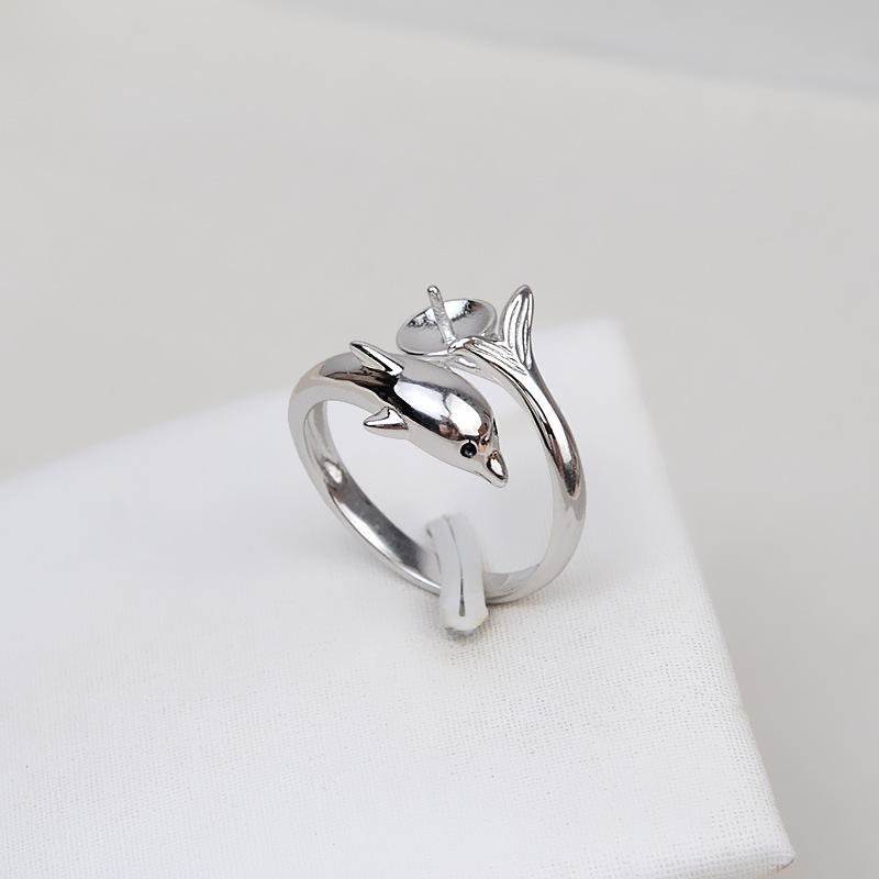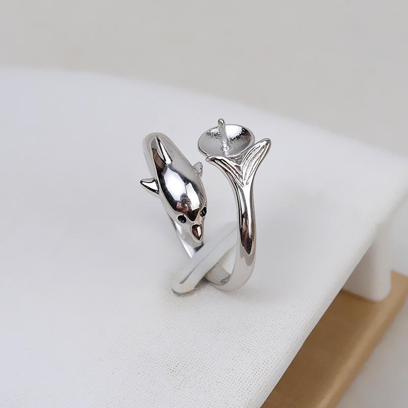 แหวนเงินแท้ S925 รูปปลาโลมา ดีไซน์เรียบหรู งานแฮนด์เมด สำหรับผู้หญิง ปรับขนาดได้ 7-9 พร้อมที่ใส่ไข่มุก 1811