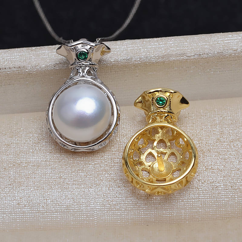 จี้เงินแท้ S925 ทำมือ สำหรับทำเครื่องประดับ DIY สร้อยคอถุงนำโชค พร้อมจี้ไข่มุก 9.5-10 มม. แบบโปร่ง 4237 ชิ้น