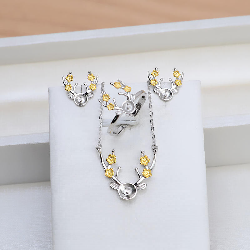 ชุดเครื่องประดับแฟชั่น DIY ทำมือ เงินแท้ S925 ประกอบด้วยจี้ ต่างหู แหวน ลายกวาง พร้อมสร้อยคอประดับมุกและเขากวาง รุ่น 1338