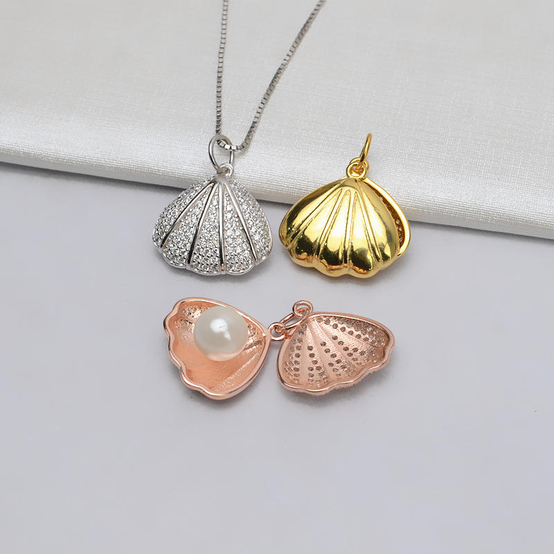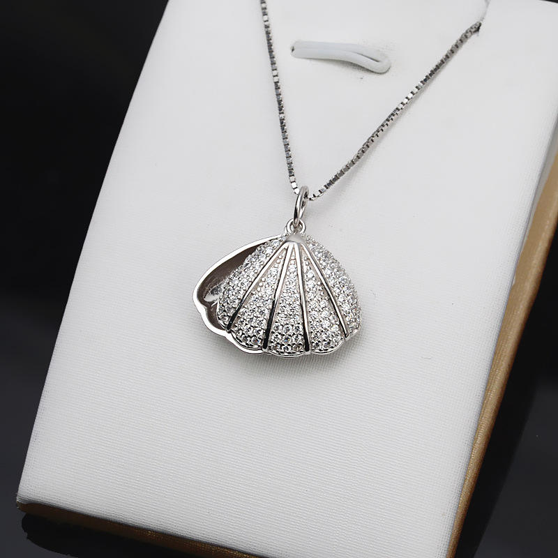 จี้เงินแท้ S925 ทำมือ สำหรับสร้อยคอผู้หญิง จี้เปลือกหอย สร้อยคอไข่มุก 9-11 มม. ฐานเปล่าสำหรับทำเครื่องประดับ DIY สไตล์ชาร์ม