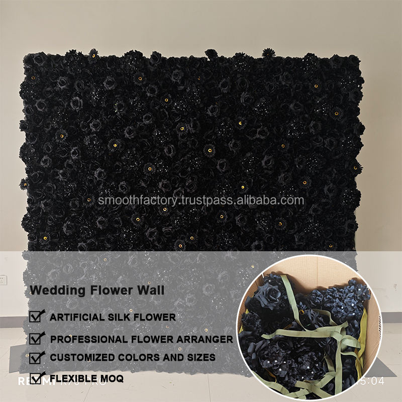 ชื่อสินค้า:กำแพงดอกไม้สีดำ ดอกเบญจมาศ ดอกไฮเดรนเยีย และดอกกุหลาบ
