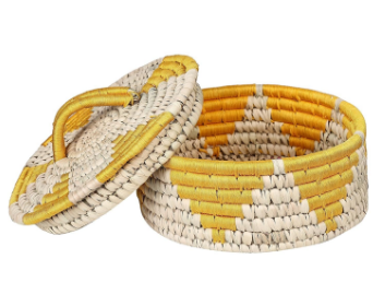 Handmade Sabai Grass Chapati Basket With Lid Multipurpose Container Box for Desktop Home Decoration